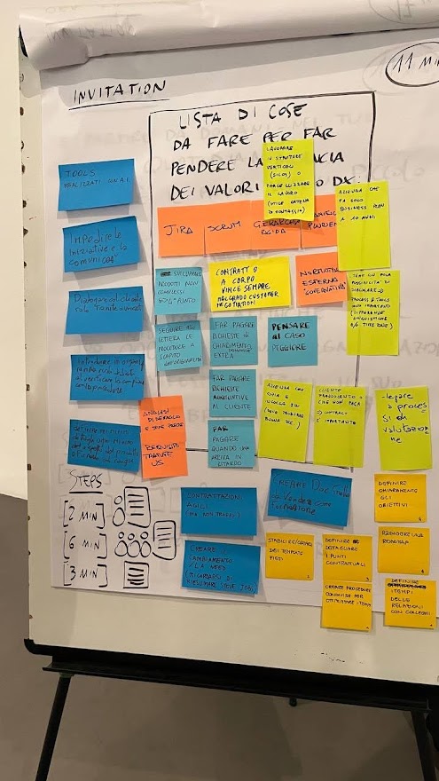 TRIZ, che gli autori delle liberating structures definiscono “distruzione creativa” è stata una sessione particolarmente stimolante, in cui abbiamo provato ancora una volta ad osservare le cose da una prospettiva diversa. In sostanza ci siamo chiesti: quali strategie e comportamenti possiamo mettere in atto ogni giorno affinché processi e strumenti, la documentazione esaustiva, la negoziazione dei contratti e il perseguire il proprio piano abbiano sempre maggior valore delle persone e delle loro interazioni, il software funzionante, la collaborazione con il cliente e il rispondere al cambiamento? (puoi approfondire questi valori sul sito ufficiale del manifesto agile).